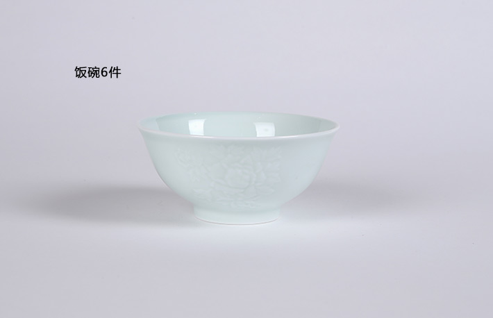 32頭影青雕刻餐具--牡丹花