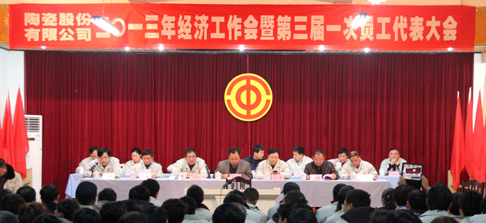 在市政協(xié)、市人大“兩會”勝利閉幕之際, 2013年1月17日下午,景德鎮(zhèn)陶瓷股份有限公司2013年經(jīng)濟工作會暨第三屆一次員工代表大會在公司五樓會議室隆重召開。