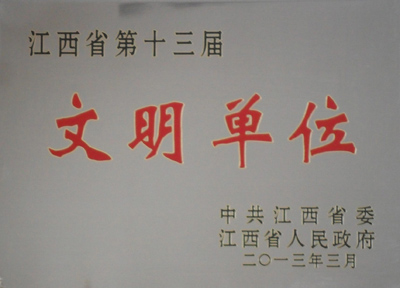 近日,省委、省政府下發(fā)通報,表彰江西省第十三屆“文明單位”。公司榜上有名。這是公司連續(xù)三屆榮獲省級“文明單位”殊榮。